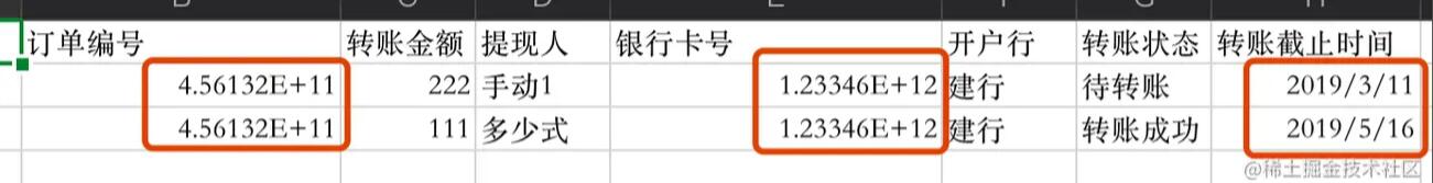 哎???我订单编号跟银行卡号咋成了科学计数法了??