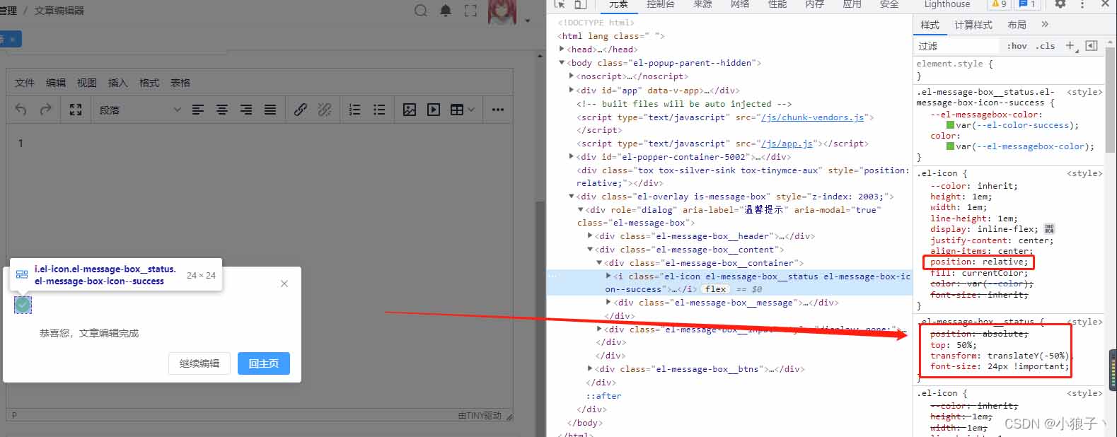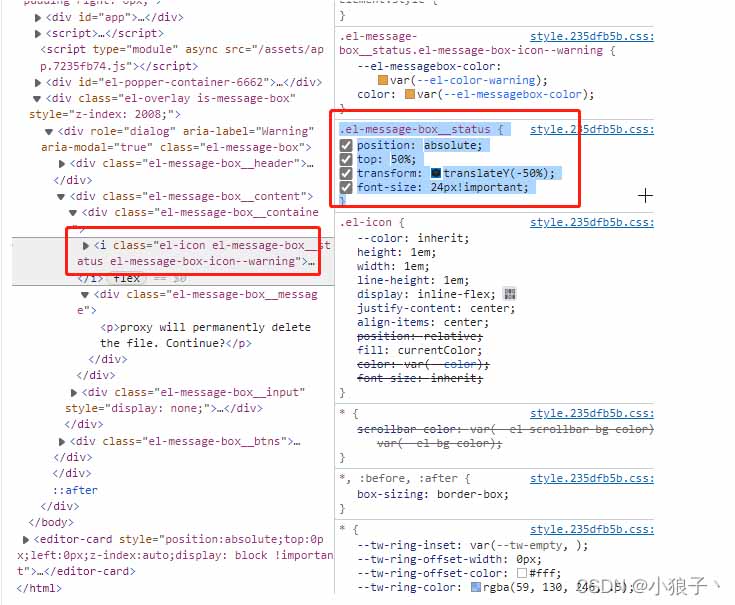 不知道从哪个版本开始发现,element-plus的message-box在有图标的时候,错位比较严重,f12跟官网的样式对比后发现,好家伙!原来position: absolute被覆盖了。