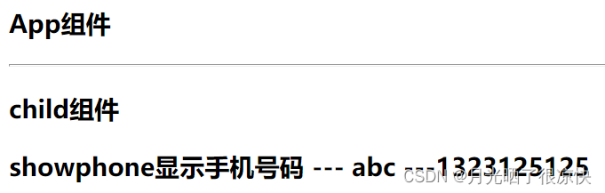 // child 组件不直接显示数据,而是将数据进行包装处理后,交给自己的子组件 showphone 来显示