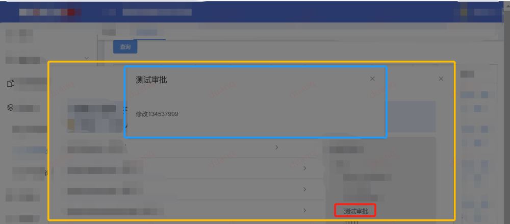 如上图所示,当存在多层弹框时,点击黄色弹框中红色内容,弹出蓝色弹框时,出现上述情况,即表现出顶层弹框被遮挡的现象,当我们点击蓝色弹框时又会出现遮挡消失的情况,下面将对这一问题提出相应的解决办法。