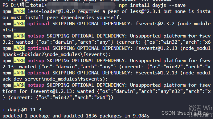 3、当然你项目里面没有安装dayjs的话还需要安装一下,因为他官网的例子用到了