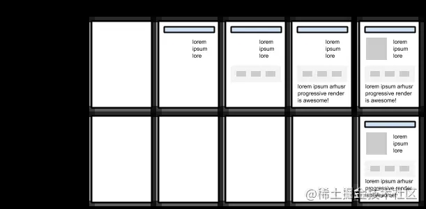 在前面我们提到过SpeedIndex 的渐进渲染是提高SpeedIndex的关键,有了这个前提,我们就可以分批异步渲染组件。先看到内容,然后在渲染其他内容