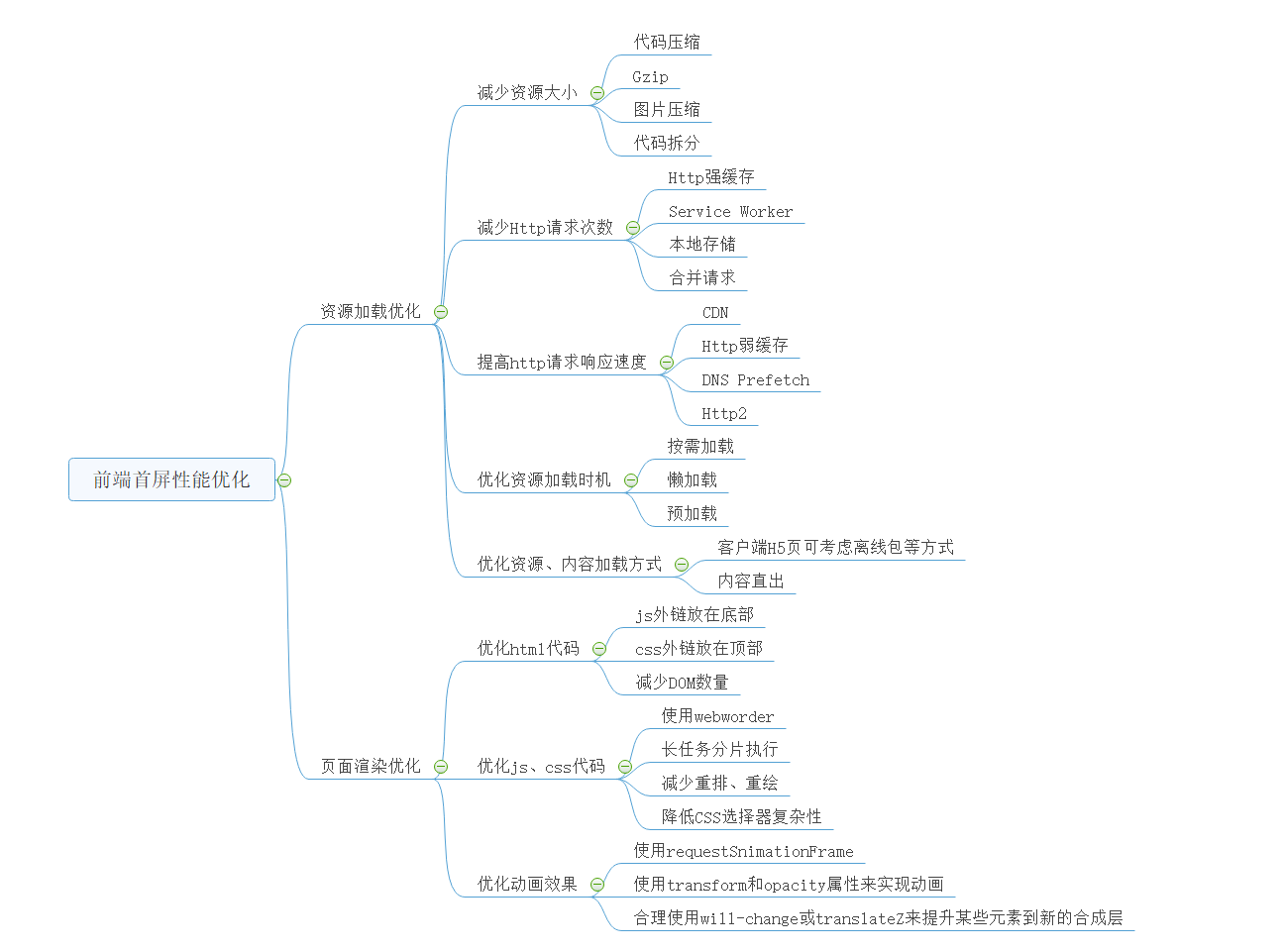 - 静态资源本地缓存:后端返回资源问题:采用HTTP缓存,设置Cache-Control,Last-Modified,Etag等响应头;采用Service Worker离线缓存。前端合理利用localStorage