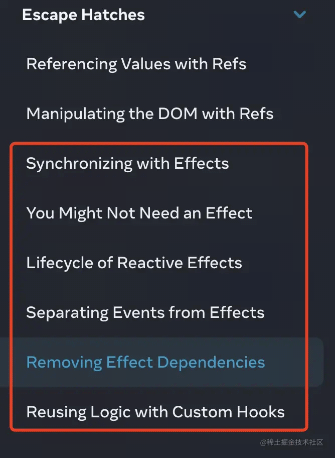 而在React beta文档中,介绍useEffect的,则有整整6节内容: