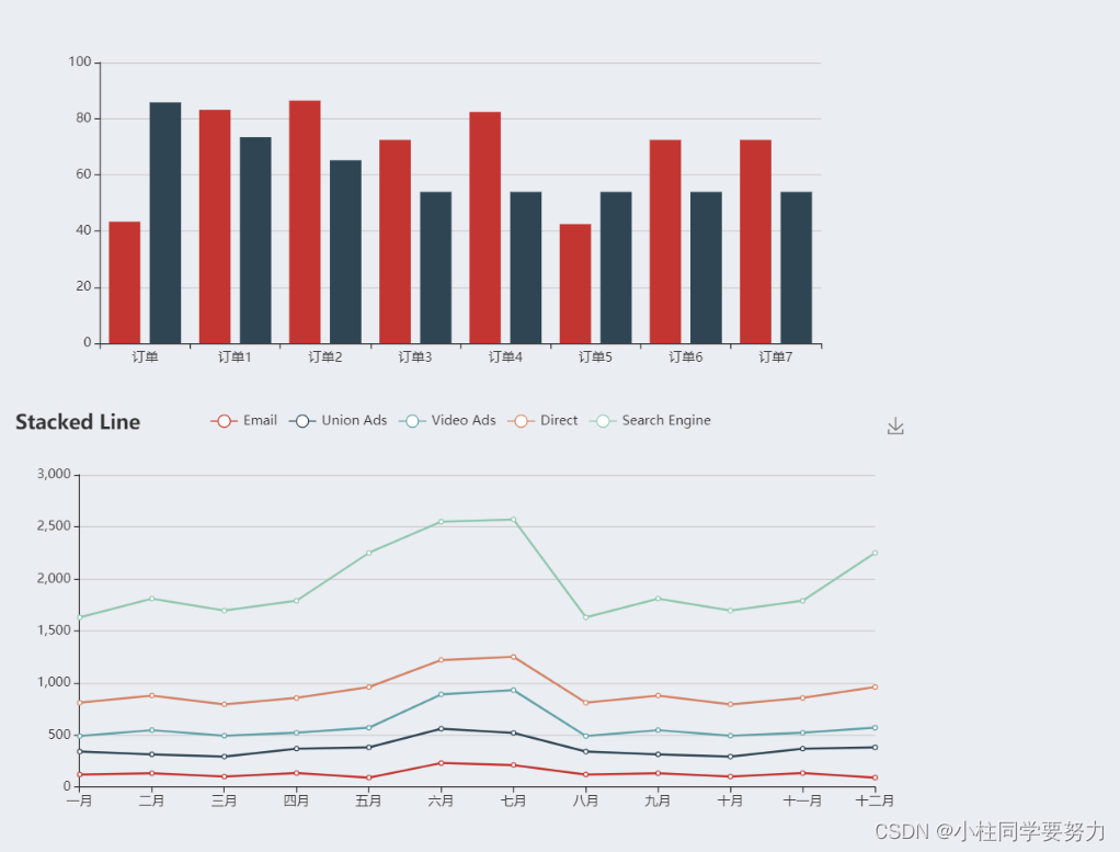 重点注意:其中const option = { }就是我们需要引进echart图表的代码