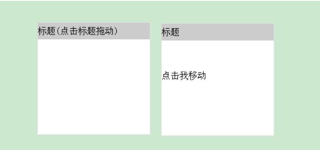 <div class="drag"> <p class="title">标题(点击标题拖动)</p> </div> <div class="drag1"> <p class="title">标题</p> 点击我移动 </div>