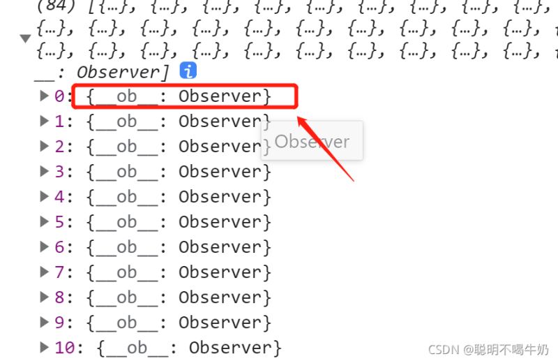 那么首先先解释一下为什么数组后面会出现__ob__: Observer ,这个后缀其实是Vue监控变量产生的,如果你是使用 push添加的对象信息就会出现__ob__: Observer 。