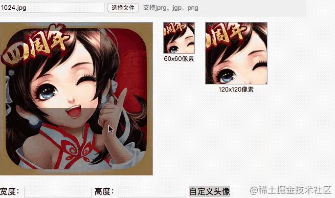 输入宽高,自定义你需要订制的头像大小,目前只支持宽高相同的头像图片。