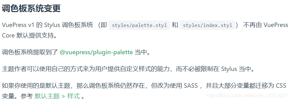 官方推荐使用插件@vuepress/plugin-palette 和 SCSS。对此插件未做详细研究,使用了一种土方式。