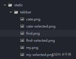 我这里准备了6张,分别用于3个tab切换使用(选中前和选中后的,放在了static文件夹下的tabbar文件夹下: