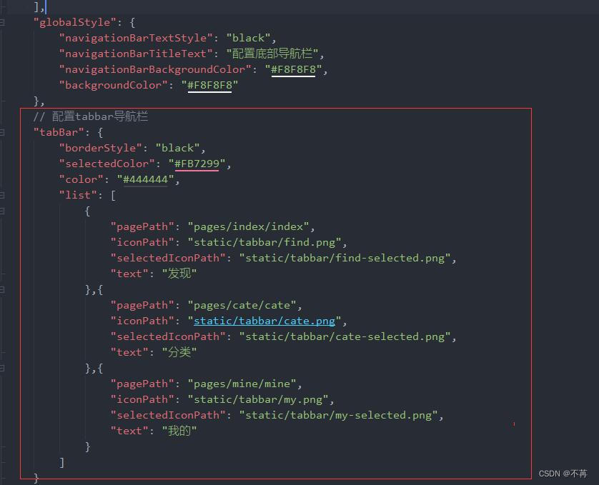 找到globalStyle位置,在它的下方配置我们的tabbar。