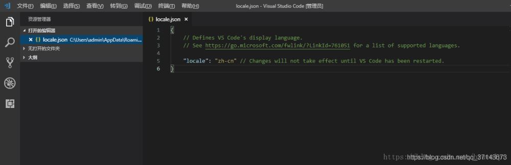 安装成功以后重启vscode,语言就改成中文了。