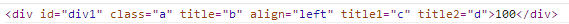 <div id="div1" class="divClass" title="divTitle" title1="divTitle1">100</div>