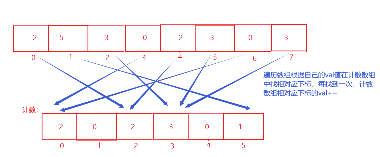 //说明,在计数数组当中,已经把array数组当中,每个数据出现的次数已经统计好了