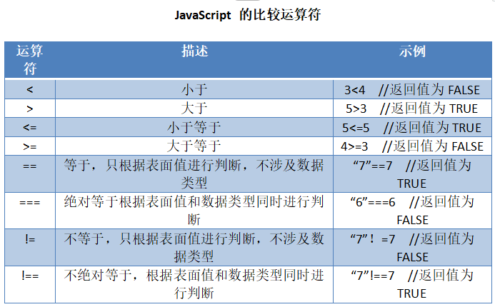 比较运算符的基本操作过程为:先对操作数进行比较,这个操作数可以为数字也可以为字符串,再返回一个布尔值 TRUE 或 FALSE;
