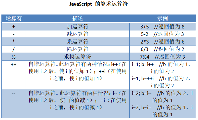 注意: JavaScript 脚本会根据操作数的数据类型来确定表达式中的 “ ” 是算术运算符还是字符串运算符;在两个操作数中只要有一个是字符串类型,那么这个 “ ” 就是字符串运算符,而不是算术运算符;