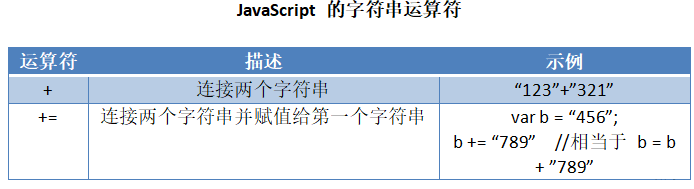JavaScript 中,可使用“ ” 或 “ =” 对字符串尽心连接运算;