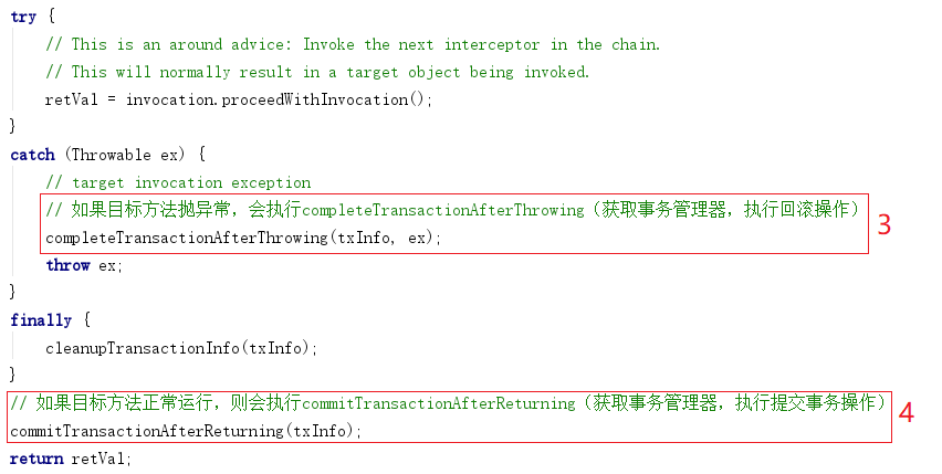 TransactionInterceptor 事务拦截器,部分源码如下