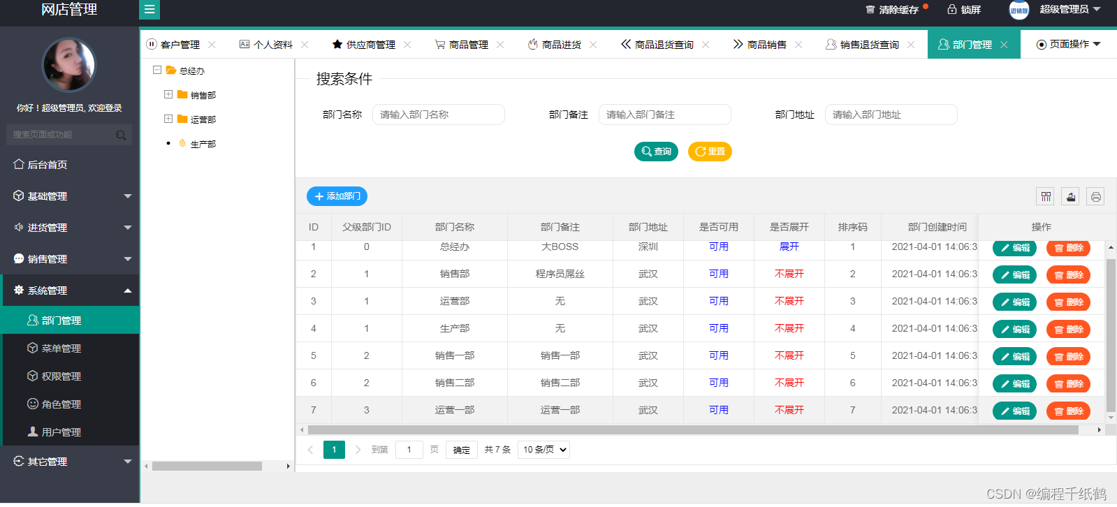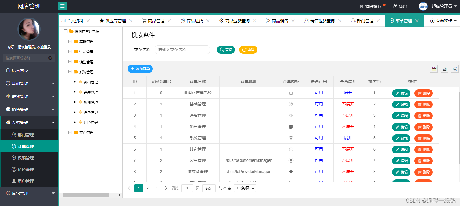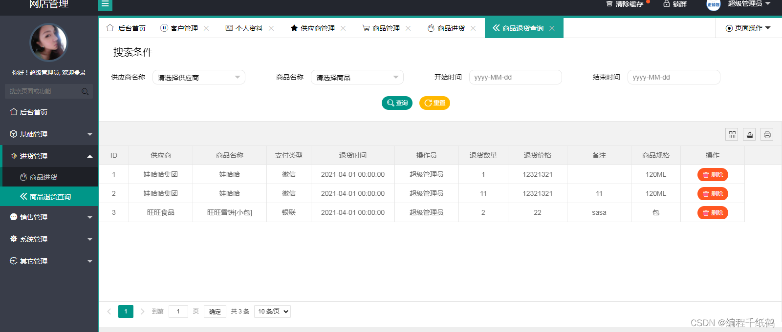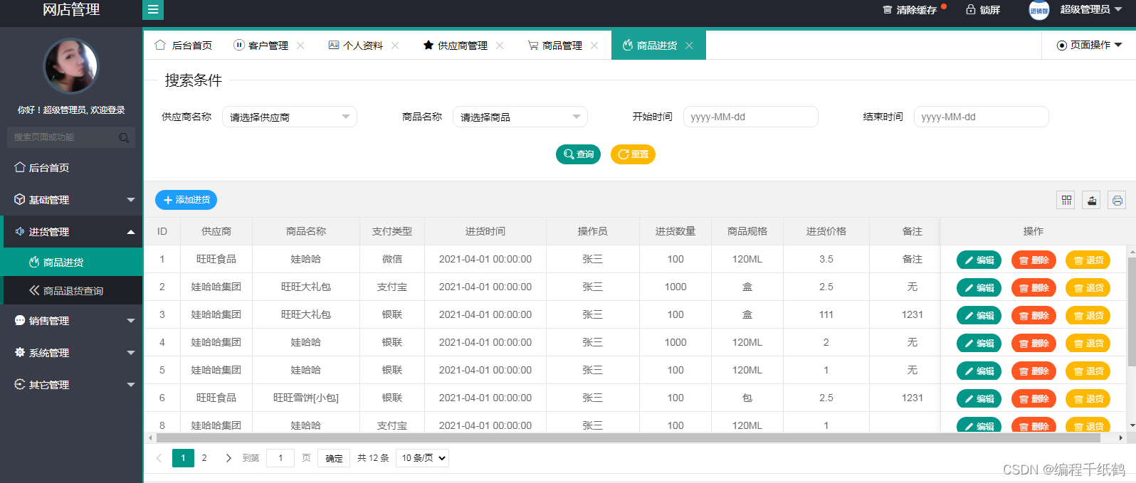 基础管理模块:包含客户管理、供应商管理、商品管理三个子模块