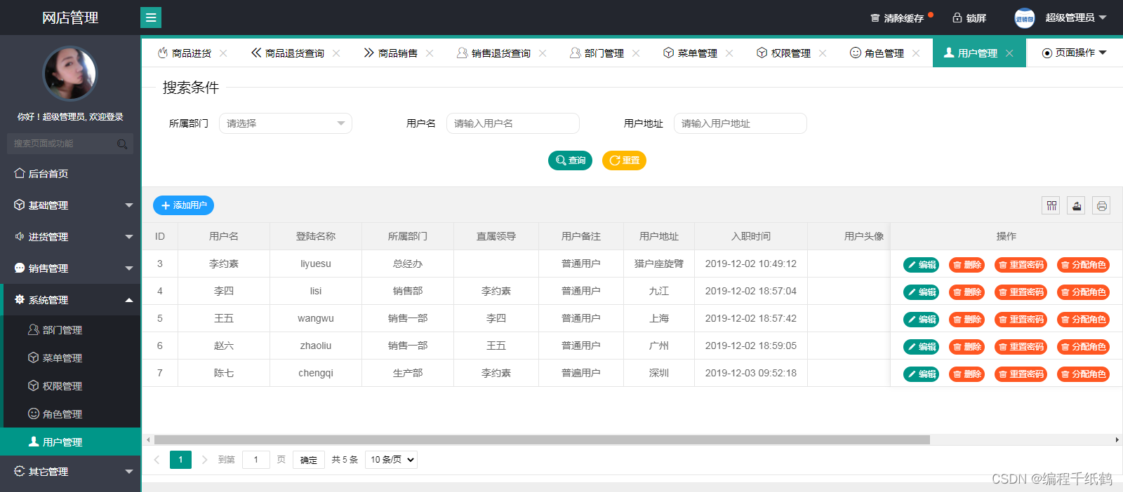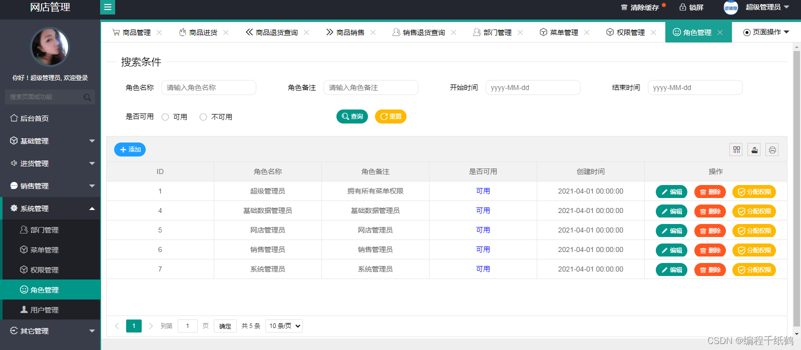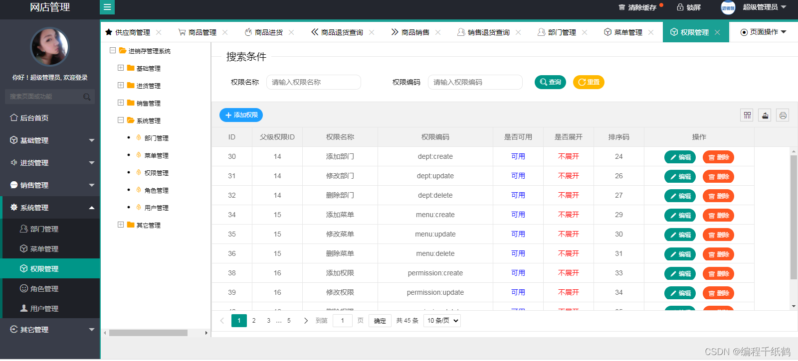 本项目实现了基于springboot的进销存管理系统,主要用户开设网店的相关商品的进货、销售、库存的管理,功能比较完整,有着完备的权限管理系统,可以自行根据需要来设计角色和分配权限,权限的粒度可以做到页面级的权限控制,整个项目来讲比较优秀。主要实现的功能有如下几个模块: