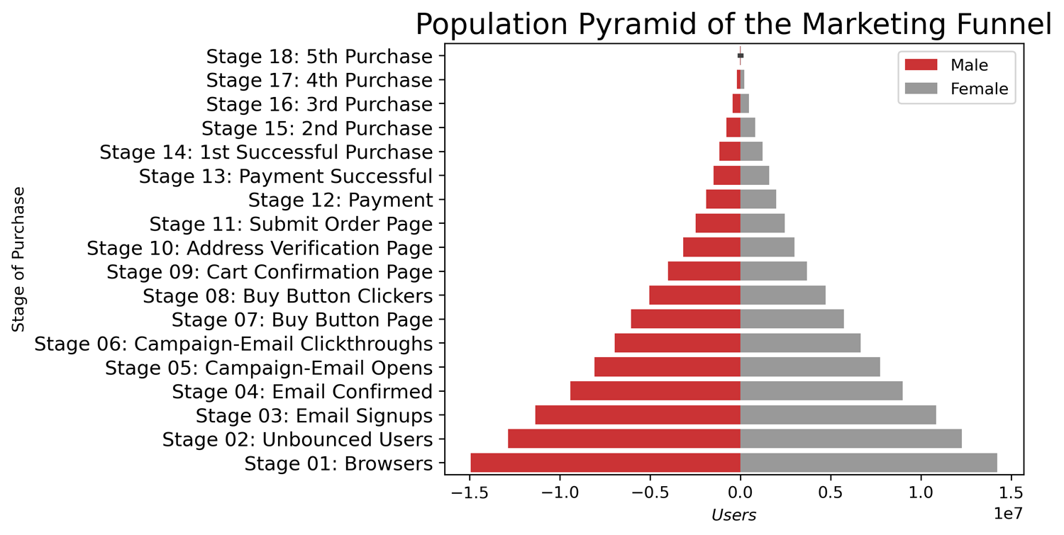 plt.title("Population Pyramid of the Marketing Funnel", fontsize=18)