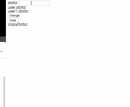 从上面的演示可以看到,当点击copy按钮时,copyData的值就变成了”this is old data”,成功将user的值复制到copyUser.