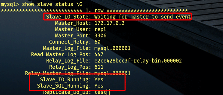 CREATE USER 'repl'@'172.17.0.3' IDENTIFIED WITH mysql_native_password BY '123456'; GRANT REPLICATION slave ON *.* TO 'repl'@'172.17.0.3';