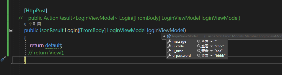 JsonResult 和 ActionResult<LoginViewModel> Login([FromBody] LoginViewModel loginViewModel) 都能接收 其他不能