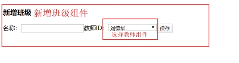 上图页面包含两个组件,“新增班级组件”和“选择教师组件”,在新增班级时需要选择改班级的管理教师,管理教师列表要从数据库中获取。选择好教师后,“选择教师组件”要把选择的教师对象传递回“新增班级组件”,这其中涉及到对象传递称为通讯。