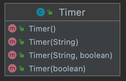 Timer有四个构造方法,可以指定Timer线程的名字以及是否设置为为守护线程。默认名字Timer-编号,默认不是守护线程。