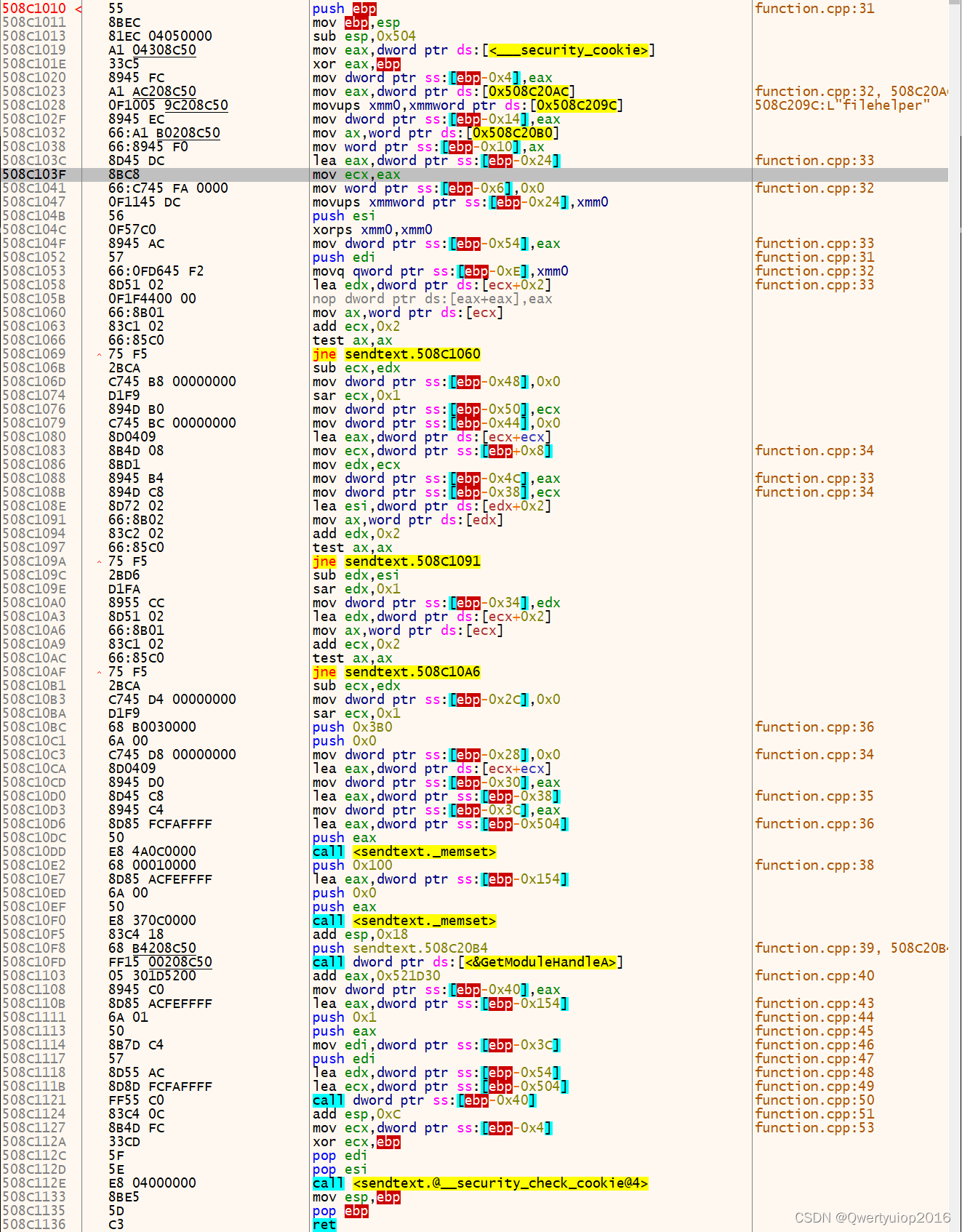508C112E的汇编是call <sendtext.@__security_check_cookie@4> ,回车进入该函数就三条指令