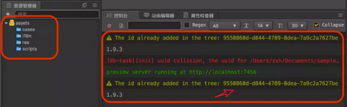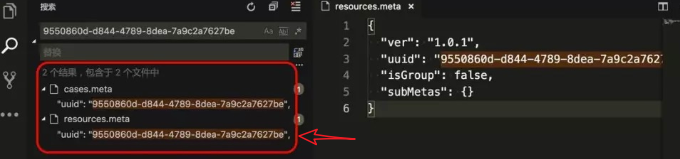 此时先关闭 Creator 编辑器,再任意删除其中一个 meta 文件,然后再打开 Creator 编辑器就可以解决。这种方法虽然可以解决问题,但在编辑器中引用到这个资源的地方将会出现资源丢失,需要重新编辑或者重新配置一次。最好是通过版本管理工具还原此 meta 文件。出现这种问题的原因一般有以下两个:在操作系统的文件管理器中移动文件时,将剪切、粘贴不小心操作成了复制、粘贴,同时也把 meta 文件复制过去了。导致项目中同时出现两个相同的 meta 文件。在多人协作时,从版本管理工具中,更新资源时碰巧遇到别人生成的 uuid 与你的电脑上某个文件生成的 uuid 一样了,但这种情况非常非常罕见。总的来说,要减少 uuid 冲突发生,最好在引擎资源管理工具中进行添加、移动文件。