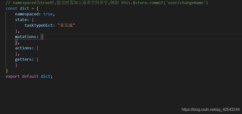 建议在modules下的文件下,加上namespaced:true,设置命名空间为true,主要为了解决不同模块命名冲突的问题