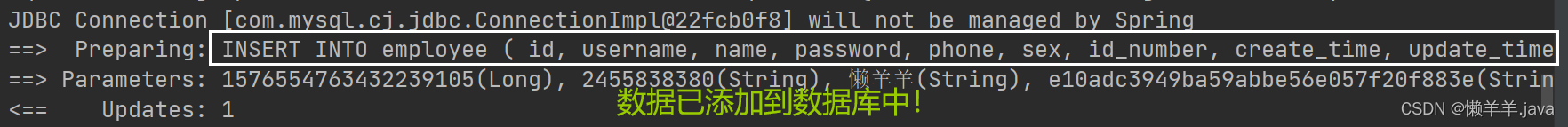 当我们在前端表单中填好了新增员工的信息后,点击保存,后台就执行如下的SQL: