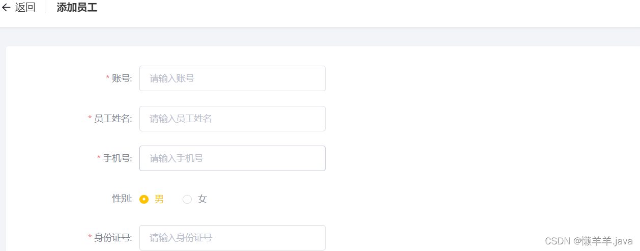 新增员工,其实就是将我们添加页面录入的员工数据插入到employee表。需要注意,employee表中对username字段加入了唯一约束,因为username是员工的登录账号,必须是唯一的