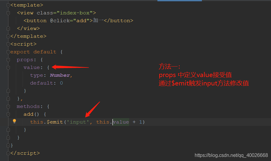 子组件props接收参数,$emit触发input事件传值