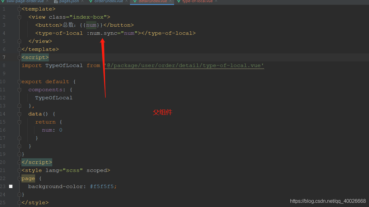 3. 父组件使用:name.sync绑定