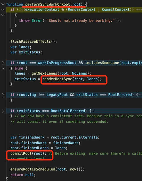 这样在 update 的时候,就会立刻执行 performSyncWorkOnRoot 来渲染。因为首次渲染的时候是马上就要渲染的,没必要调度。