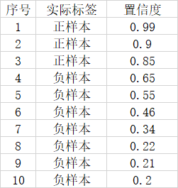 假设一幅图里面总共有3个正样本,目标检测对这幅图的预测结果有10个,其中3个实际上是正样本,7个实际上是负样本。对应置信度如下。
