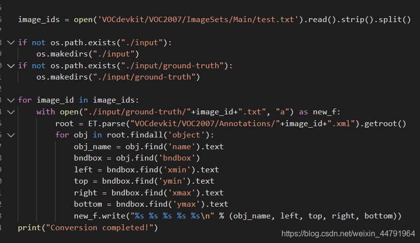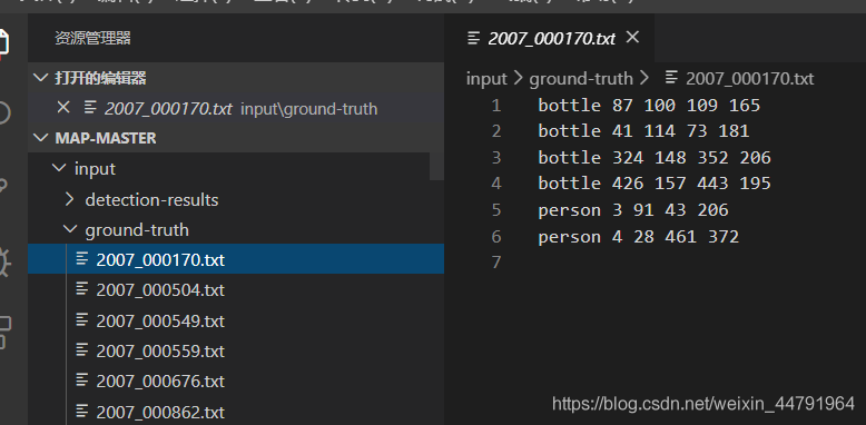get_dr_txt.py是用来获取测试集中的xml,然后根据每个xml的结果生成真实框的txt。利用for循环检测所有的xml。