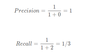 此时Precision非常高,但是事实上我们只检测出一个正样本,还有两个没有检测出来,因此只用Precision就不合适。