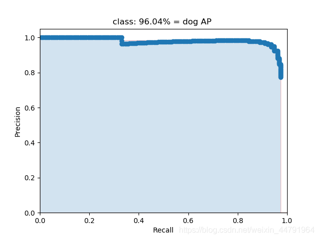 此时Precision和Recall可以在图片上画出一条线,这条线下部分的面积就是某个类的AP值。