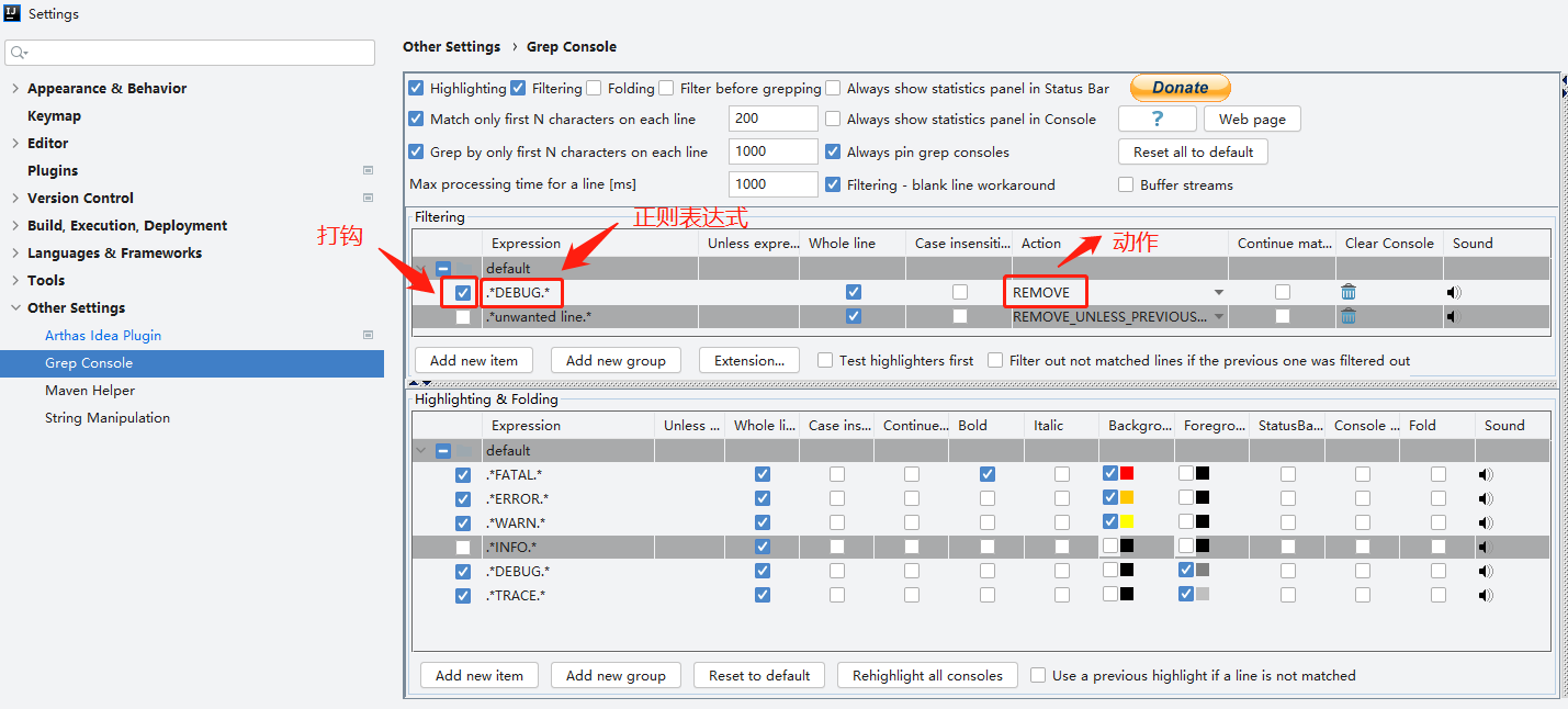 然后修改正则表达式 【Expression】,匹配DEBUG就行, .*DEBUG.*
