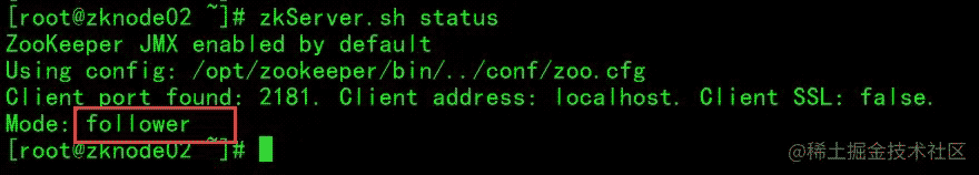 再来分别看一下 zknode01 ~ zknode04的 zk server 状态: