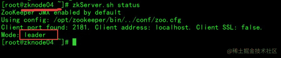 前面演示了有 4 个服务器的 zk集群 ,其中 zknode03 是 leader 。