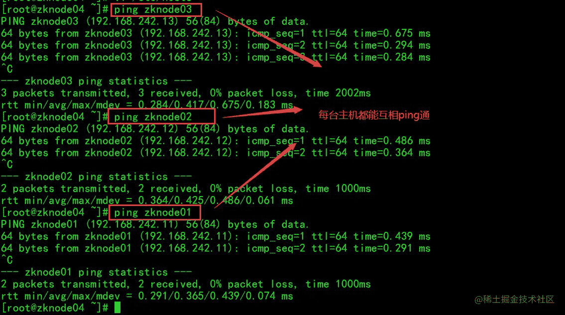 这四台虚拟机主机名称分别设置为:zknode01 、zknode02 、zknode03 、zknode04 。