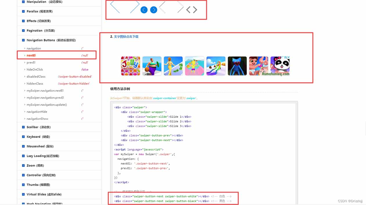 },样式:--swiper-navigation-size: 20px;/* 设置按钮大小 */