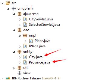 将查到的数据放到后台,建立一个SelectedServlet类,用于接收查询到的所有省份的信息