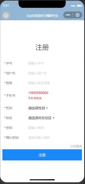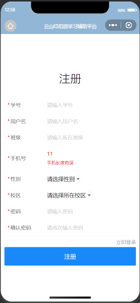 在注册页面输入手机号,在请求注册接口前先行判别输入的手机号码是否合法;