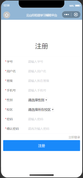 <van-button class="btn" size="large" type="info" bind:tap="userRegister">注册</van-button>
